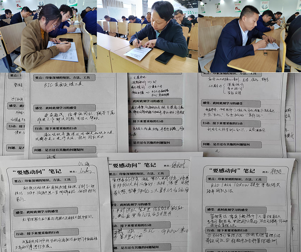 課程結(jié)束時(shí),學(xué)員使用“要感動(dòng)問”筆記,對(duì)課程所學(xué)進(jìn)行總結(jié)回顧。課后將結(jié)合《教練式輔導(dǎo)反饋》課程所學(xué)內(nèi)容,運(yùn)用教練型領(lǐng)導(dǎo)力技能之“BIA”、“BID”或“GROW模型”三種工具中的任一種,在自己的工作實(shí)踐中開展一次應(yīng)用,并形成書面案例提交。