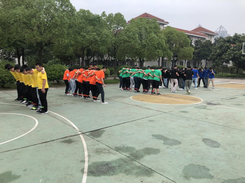 第一個(gè)活動(dòng)的主旨是通過(guò)簡(jiǎn)單的肢體接觸,拉近互相之間的距離,消除陌生感,而后組成一個(gè)團(tuán)隊(duì)解決問(wèn)題?;顒?dòng)第一部分是我們約六十個(gè)小伙伴拉著手圍成一圈,通過(guò)起伏傳遞“電流”,如果不是親身經(jīng)歷,我對(duì)結(jié)果是難以置信的,我們由最開(kāi)始的三十秒,逐漸加快速度,到最后找到方法,竟在一秒內(nèi)就完成了。事實(shí)證明,只要找到方法,大多數(shù)事情并不會(huì)是我們想象的那樣困難。第二部分是雙手交叉拉住左右兩邊小伙伴的手,然后再不松開(kāi)的情況下解開(kāi),并且還是要面朝圓心。我們大家開(kāi)始集思廣益,紛紛出謀獻(xiàn)策,最后還是實(shí)踐出真知,在很短的時(shí)間內(nèi)就完成了教練設(shè)置的難題。在第一個(gè)活動(dòng)結(jié)束后,天空又開(kāi)始下起了小雨,活動(dòng)不得不轉(zhuǎn)移到室內(nèi)開(kāi)展,在教練的組織下,我們有序得撤離籃球場(chǎng),進(jìn)入教室。