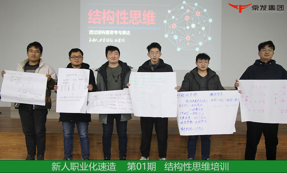 為持續(xù)提升儲備干部職業(yè)化能力,增強新人的結(jié)構(gòu)性思維、邏輯思維與公眾表達能力。于2022年1月27日,常發(fā)集團人力資源部組織開展“結(jié)構(gòu)性思維”培訓。本次參訓對象為常發(fā)集團2021屆儲備干部,共計31人參加此次培訓。